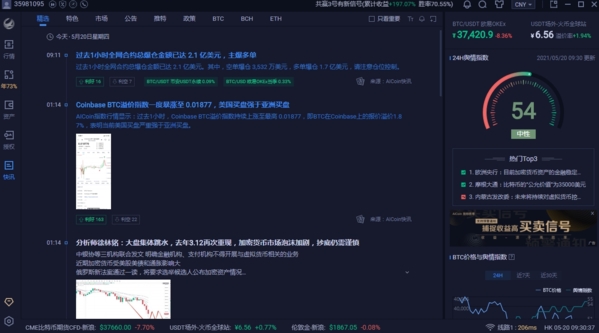 AICoin客户端官方版是一款十分好用的区块链资源整合工具。AICoin可以帮助用户查看每一种数字货币的实时涨跌情况,帮助用户可以更好的掌握入场和出手的时机。而且软件也直链了各大交易平台,交易速度非常的快。