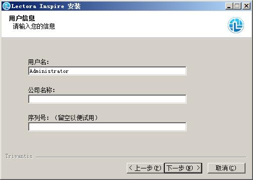 3、下一步输入用户信息和序列号,如果序列号没有的话可以留空。
