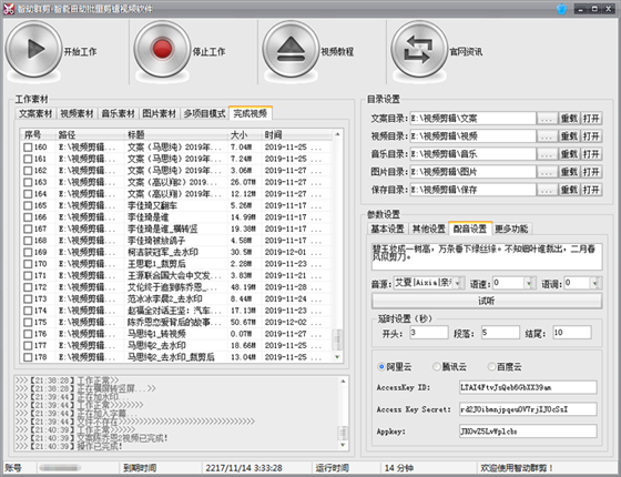 2、根据文案自动配音,支持阿里云,腾讯云,百度云;
