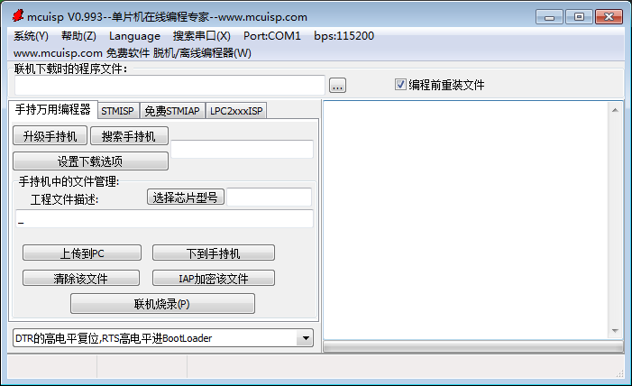 mcuisp stm32是一款非常好用的ISP下载器,此软件可以帮助用户解决stm32f系列单片机和NXP的LPC2xxx系列的isp问题,能够下载一段代码到SRAM里面,再利用我自定的协议进行真正的FLASH烧录,可以超脱STM32自身串口ISP的某些局限性,非常的方便实用。