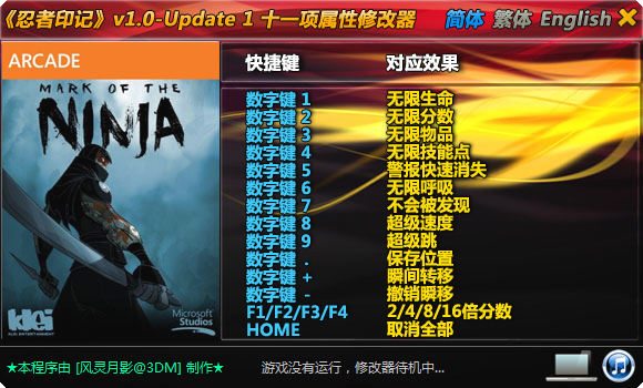 忍者印记十一项修改器是一款游戏《忍者印记》属性修改器,玩家可以通过忍者印记十一项修改器更轻松的畅游在游戏中,各种关卡轻松渡过,各种任务轻松完成。