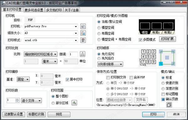 模型空间多图批量打印;多个布局空间多图或单图批量打印。