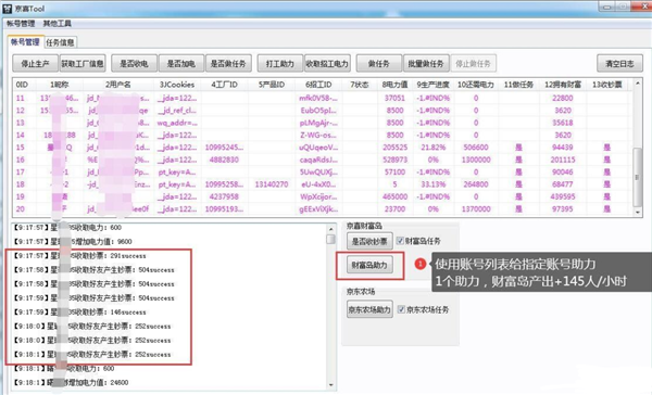 3、使用帐号列表给指定帐号助力(适合多帐号使用)。