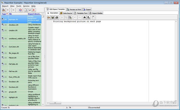 4、不同的数据库格式:Reportizer适用于关系型数据库,通过几个接口:ADO,BDE,或Interbase的。它已经过测试以下数据库类型:dBase的(DBF),矛盾(DB),TXT,CSV,甲骨文,Interbase的,的MS access,MS Excel中,sql server中,HTML,Visual FoxPro中,mysql和PostgreSQL。