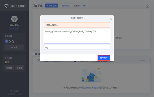 3、这里我们选择添加任务,输入百度网盘链接和提取码,然后点击“提取文件”;