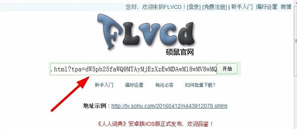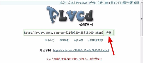 2、将要下载的视频网址粘贴到搜索框里 并点击开始按钮。