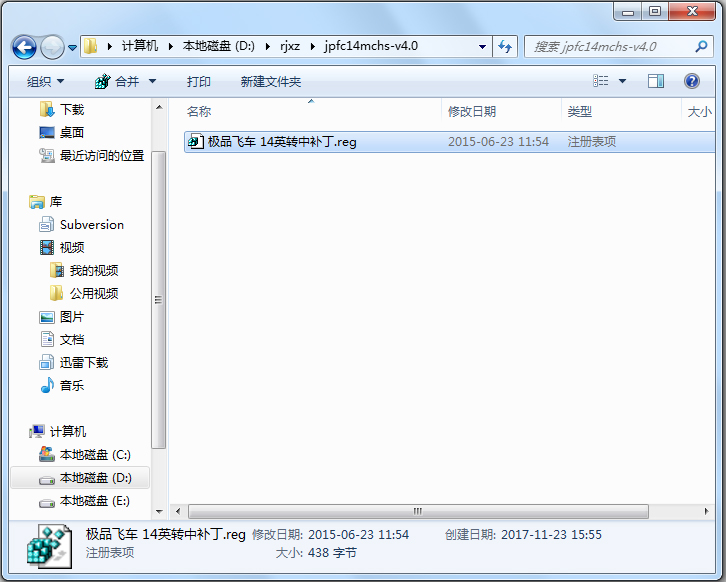 极品飞车14汉化补丁直接双击导入,或用鼠标右键点击,选择导入(或是合并),导入到注册表。