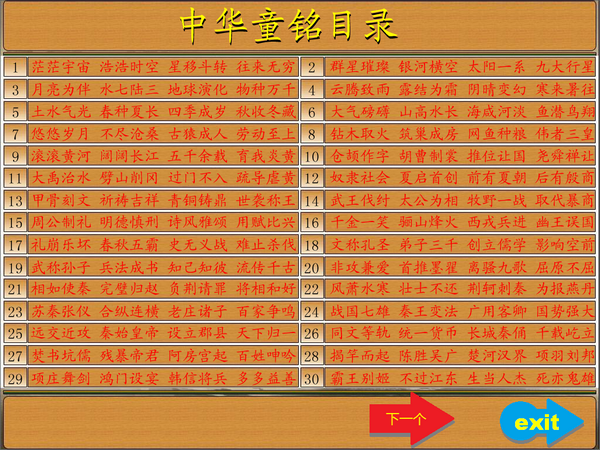 拓新中华童铭是专为学前儿童设计的一款启蒙学习软件,包含了中华童铭的文字内容,集合了地理、自然、社会、政治等学科基本知识于一体,帮助孩子趣味学习。