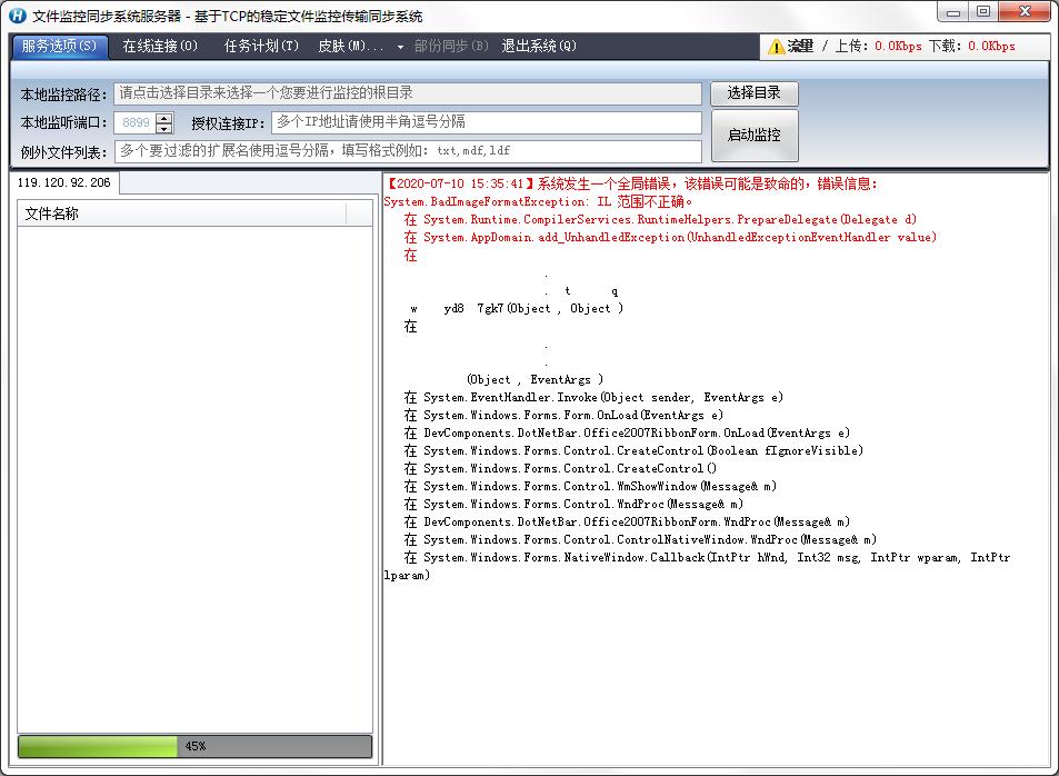 文件系统监控同步传输系统又名蓝软服务器同步软件,也是基于TCP传输、Windows文件系统监控、Windows Service的文件系统监控同步系统,程序分为服务端和客户端,服务器安装在主服务器上,也就是存储有母资源的服务器上,客户端安装在需要同步的服务器上,设置好一系列参数即可使用。