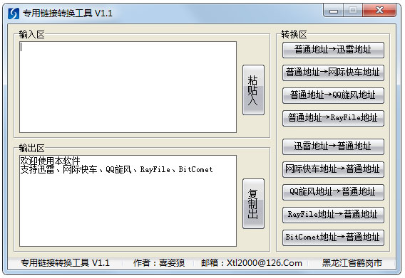 专用链接转换工具v1.1绿色免费版是一款可以将迅雷,网际快车,qq旋风,rayfile下载工具和网盘的专用地址转换成普通地址的工具。如果想下载资源又不想下载那么多专用的下载器的话,这款小工具可以帮到你!