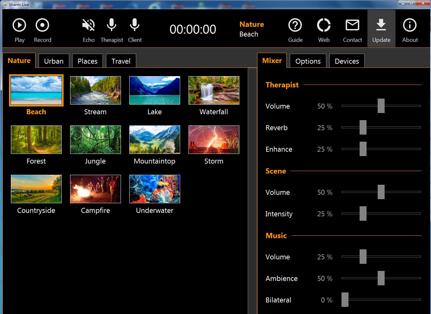 在您控制场景的强度的同时,通过城市街道,拥挤的地铁或拥挤的体育场的声音指导您的客户。通过Sharm Live,您可以为您的客户提供终极治疗体验,在这里您几乎都在场景中。
