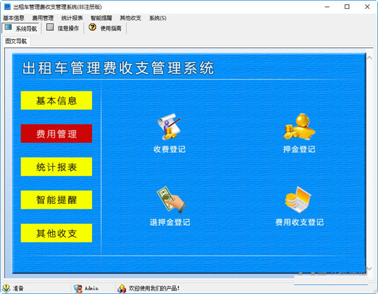 出租车管理费收支管理系统是一款非常不错的收支管理软件,该款软件包括了基本信息、费用管理、统计报表、智能提醒等功能,多处具有快速辅助录入功能,操作简单,易学、易用,处理功能高效强大,是协助你的好帮手!