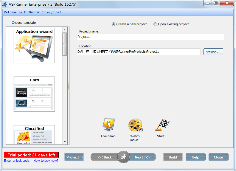 2、打开软件后选择你的asp文件保存位置。