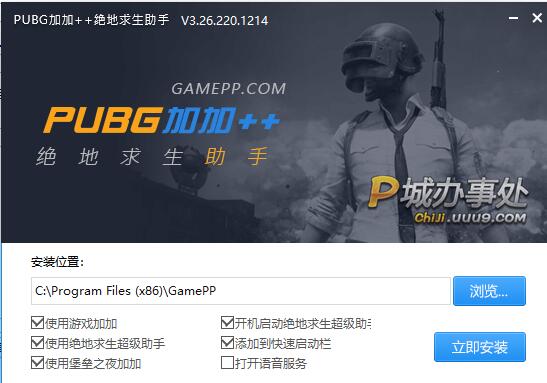 2、或者你可以点击【自定义安装】,在打开的窗口点击【浏览】可以自行选择绝地求生超级助手安装位置,你可以自行勾选开机自启动,使用绝地求生超级助手等选项,选择完成后点击【立即安装】,耐心等待安装完成就可以了。