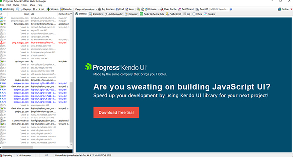 使用Fiddler记录计算机和Internet之间的所有HTTP(S)流量。从几乎任何支持代理的应用程序(IE,Chrome,Safari,Firefox,Opera等)调试流量。