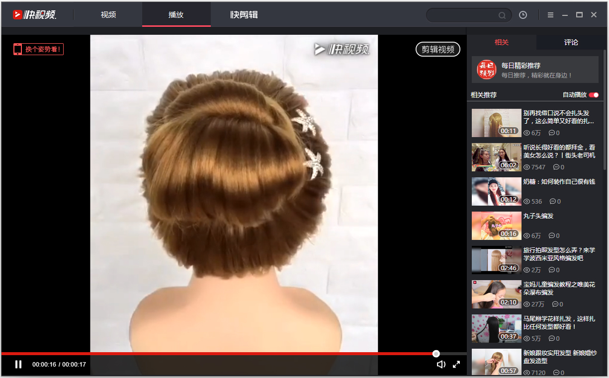 快视频是一个短视频聚合平台,通过人工智能深度学习了解你的兴趣,越用越懂你,独有视频编辑,一键即可进行剪辑并发布,视频内容全,更新速度快,无广告观看体验,国内外视频资源尽收眼底!