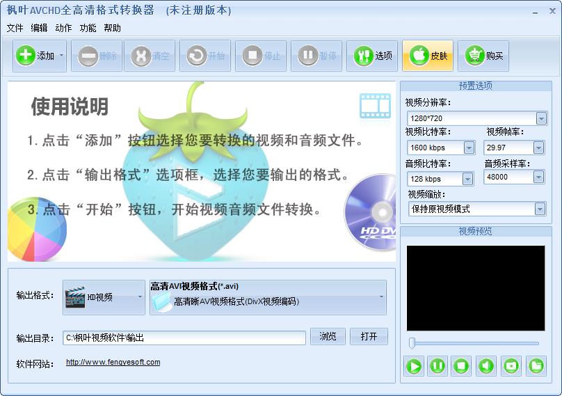 枫叶AVCHD全高清格式转换器是一款功能强大、操作简单的全高清视频格式转换工具。AVCHD全高清格式转换器主要是针对各种高清设备而开发的格式转换器。如果看到您的平板电视设备上有Full HD标识,说明您的设备支持全高清视频格式的播放,本软件能转换1920*1080P高清视频,可以满足您的全高清视频播放需求。
