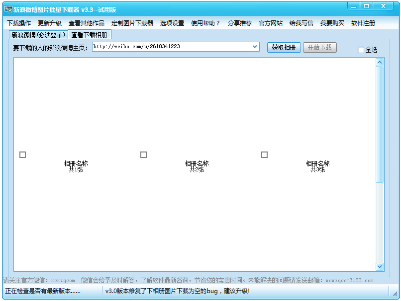 新浪微博图片批量下载器可以批量下载新浪微博的相册所有图片到本地。