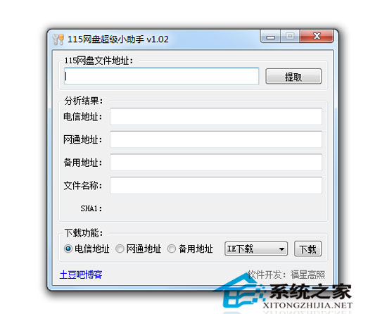 115网盘超级小助手手下载1:自动识别115网盘电信,网通,备份地址,文件名称,文件Sha1。
