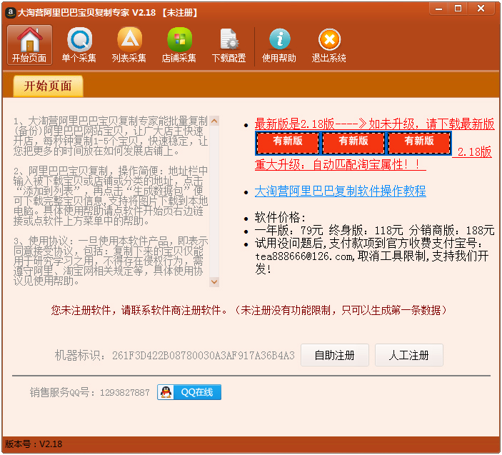 使用协议:一旦使用本软件产品,即表示同意接受协议,包括:复制下来的宝贝仅能用于研究学习之用,不得存在侵权行为,需遵守淘宝网相关规定等,具体使用协议见使用帮助。
