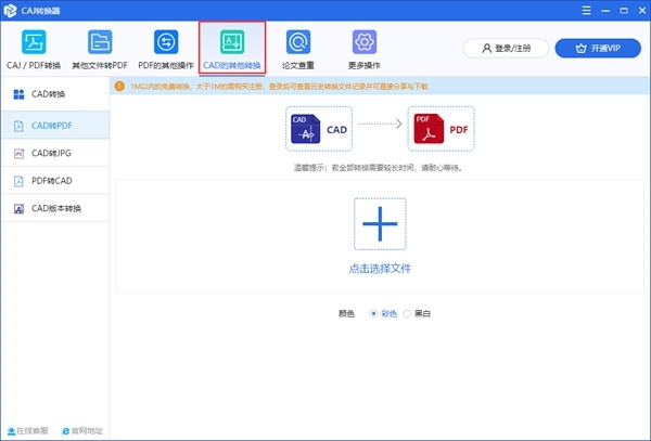 4、CAD的其他转换可以完成有关CAD格式转换的相关操作,包含:CAD转PDF、CAD转JPG、PDF转CAD、CAD版本转换;