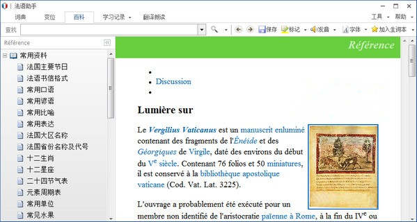 法语助手首次整合了多本百科全书,搜索单词时就能同步给出原版参考资料,用户在了解单词解释的同时,不仅扩充法语阅读量还能学习到相关的知识。