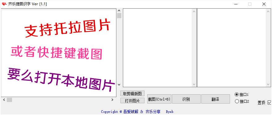 4、支持置顶显示,可以将齐乐捷图识字显示在窗口主界面。
