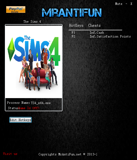 模拟人生4两项修改器,可获得无限金钱,无限满意点数这两项实用功能,需要的可以来看下哦。