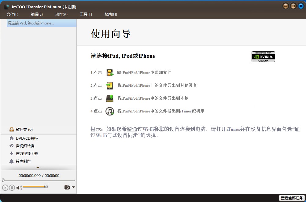 ImTOO iTransfer Platinum是一款十分专业且优秀的文件传输转换工具。可以让您将各种的DVD文件、电影、音乐、电子书在ipad/iPhone/iPod和电脑之间做传输转换的工具。软件还可以更轻松的管理您移动装置里的文件或备份您的重要资料。