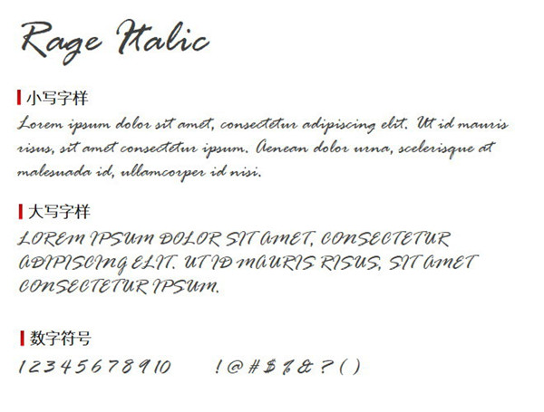 3、Rage Italic英文字体,Rage Italic英文字体是时下网民最常用的字体之一。 适用于广告设计、网页设计、美术设计、正文标题等。字体免费、绿色、安全、无毒。让您放心使用。