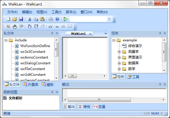 walkLan是一款简单实用的脚本编辑器软件,是一个可编辑和直接运行脚本的免费小软件,所支持的脚本语法与c/java相似,提供console、file/db和dialog为输入输出接口,特别提供了一些GIS工具类,如:Wkbox、Wkdialog、Wkgis、Wkclean等等,另外软件附带了一些测绘和图形算法例子供参考,本软件软件适合用于完成一些短期的计算和数据处理任务,它不需要为安装复杂系统消耗大量的时间。