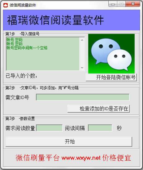 微信阅读量软件是一款功能强大的刷微信阅读量软件。该软件操作简单,支持自定义刷多少阅读量,想多刷就多刷,让你的微信文章阅读量爆涨。
