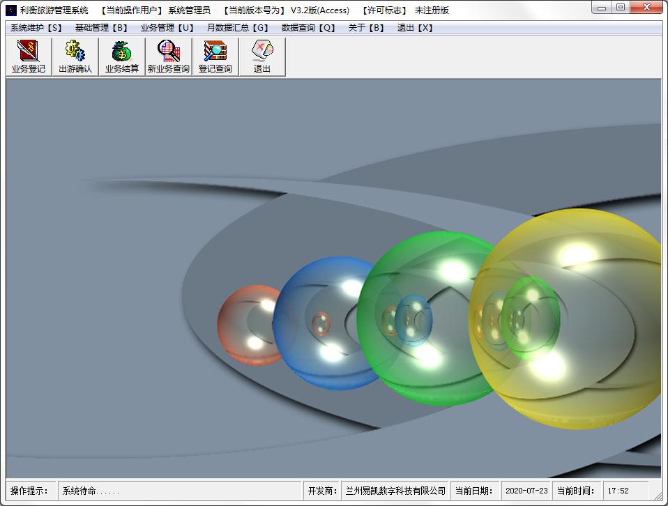 利衡旅游管理系统从旅游管理的角度出发,软件设计了从旅游路线核算规划、业务登记、确认出游、与地接社业务结算到最后自动核算经营收益等诸多方便的功能,使您对你的经营情况了如指掌,从而更好的规划您的发展方向,本还设置了景点、酒店、购物场所、交通工具等字典信息的查询与收集功能,极大的方便了您日常数据查询工作。