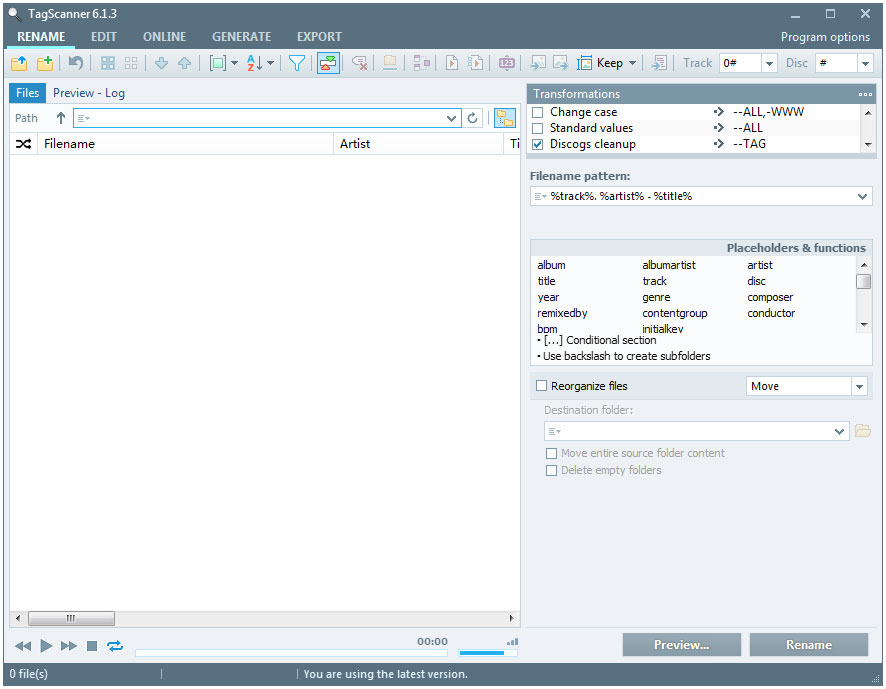 TagScanner这套软件可以运用MP3的标签(TAG)资讯来对MP3文件更名,或是用MP3文件名来更改标签资讯。它拥有工作底稿的技术及强大的标签编辑器,具有批次功能。且它的播放清单编辑程式可以将播放清单输出至HTML或Excel。内建有播放程式,及有很不错的操作介面,且并不需要安装。