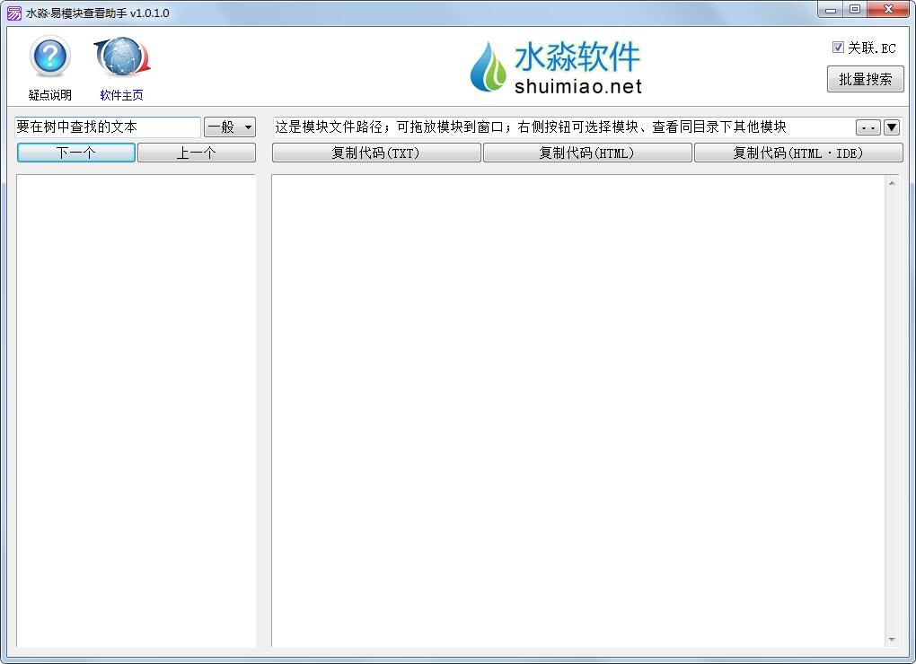 水淼易模块查看助手是一款绿色小巧、简单易用的工具,用户关联EC文件双击就能够打开查看文件,而且还可以拖放EC文件到主界面查看。