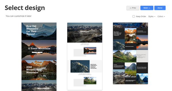 现在,从内容卡中选择一种设计。所有设计都是唯一的,而不是预制的模板。一切都在几秒钟内即时创建!选定的设计可以自定义,或者以后可以完全更改。