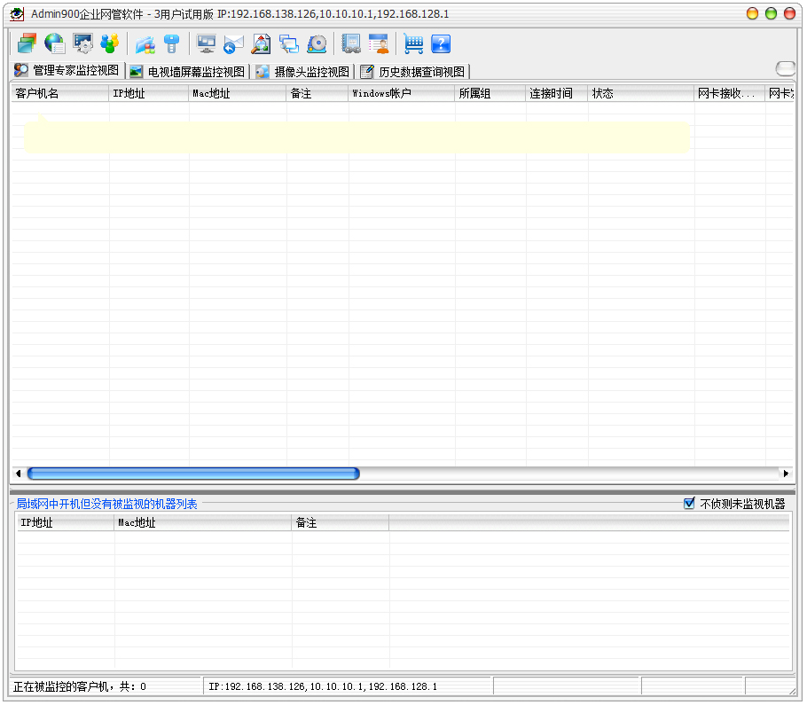 网管软件(Admin900企业网管软件)是一款功能非常强大的网络监控软件,网管软件(Admin900企业网管软件)提供可定制的灵活的管理策略和不同种类的管理设置,主要具备限制、监控以及远程协助三大功能。网管软件(Admin900企业网管软件)可以设置合理的上网限制,让员工上班时间不会上班开小差浏览无关网页。
