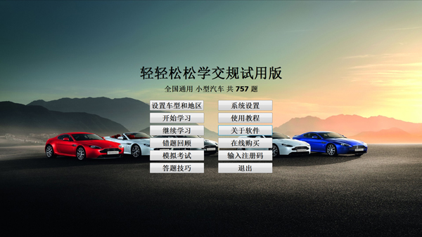 轻轻松松学交规是一款专为机动车驾驶人科目一考试过程精心设计的一套功能全面、性能优异的学车助考软件。如果您想学车或正在学车,为考个驾照而辛苦、焦虑的话,本系统完全可以助您一臂之力,让您在驾考路上轻松过关。