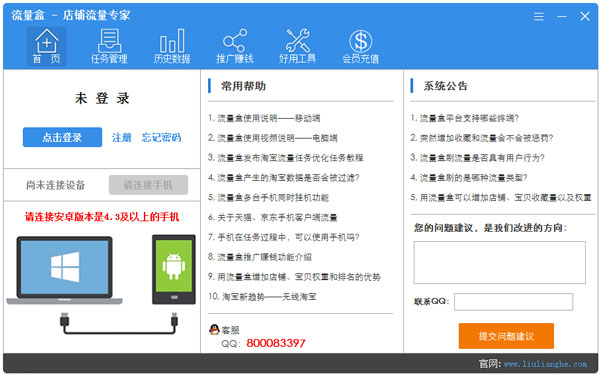 流量盒是一款针对淘宝、天猫刷流量的应用软件。使用该软件可以增加淘宝店铺的收藏、店铺的流量等,来提升店铺在无线端的流量和宝贝收藏数量,从而达到店铺的总盈利的上升。且在软件平台上,由于是大家作业,IP都是全国各地的,保证了安全和有效性。