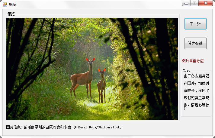 点击获取壁纸即可,由于必应服务器在国外,加载时间较长、程序出现假死属正常现象,请耐心等待。