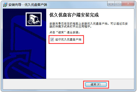 2、安装完毕后,请打开“优久优盘客户端”;
