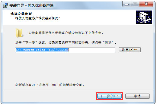 2、进入优久优盘客户端安装向导,单击“下一步”继续;