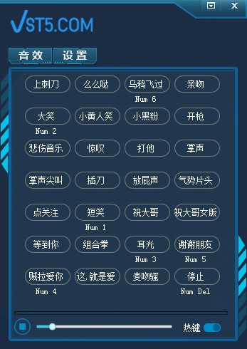 VST5直播音效助手是一款非常好用的特殊音效播放工具,软件内置数百种恶搞音效,支持快捷键播放,是主播主持们必备的调节现场氛围神器,有需要的用户不要错过了,欢迎下载使用!