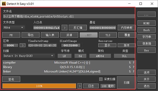 Detect it Easy是一个多功能的PE-DIY工具,主要用于壳侦测。功能正日益完善,是不可多得的破解利器!支持文件直接拖放,可添加到右键菜单,非常方便!Die和peid一样可以加载插件。