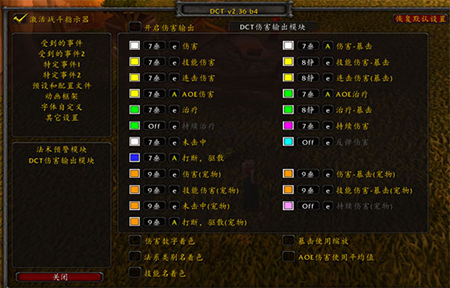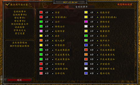 受到的事件页面,可以设置各种技能显示出的数字颜色。