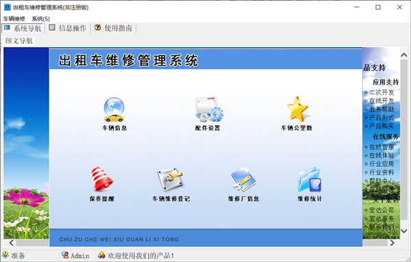 《出租车维修管理系统》适用出租车公司维修车辆的管理软件。主要包含车辆信息、配置管理、车辆公里数等功能。本管理系统多处具有快速辅助录入功能,操作简单,易学、易用;处理功能高效强大,是协助您的好帮手!