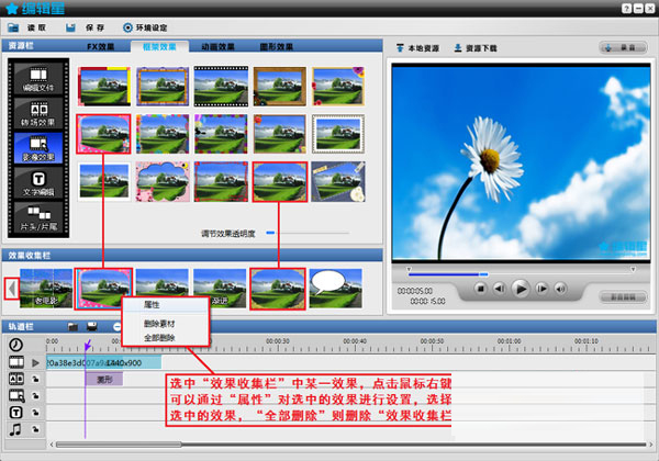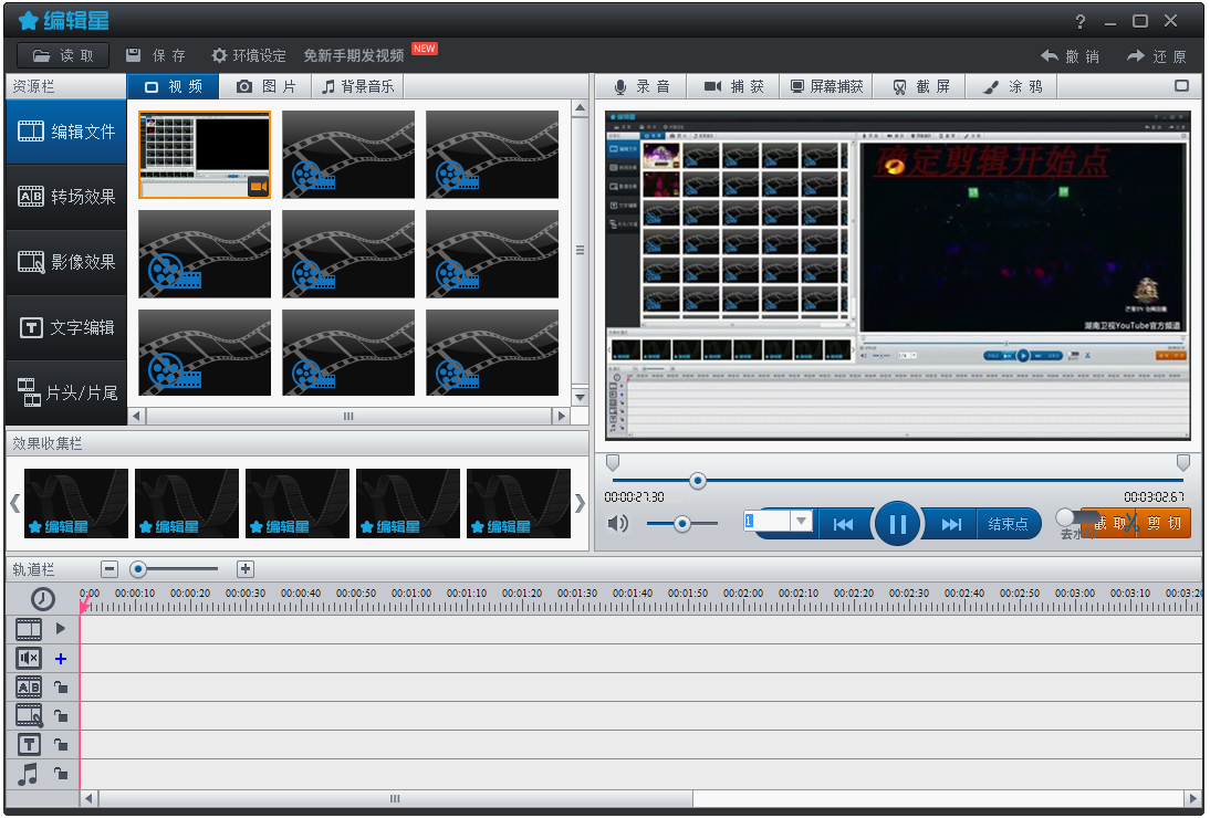7、影像效果、文字效果、背景音乐的重叠功能可自由整编各种视频。