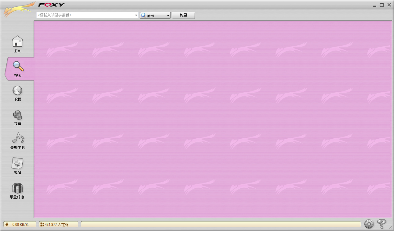 foxy是一款繁体的P2P软件,用户可以通过他搜索获取想要的资源,比如电影、电视等,然后复制的连接可以通过迅雷下载。foxy1.9.8繁体中文版是比较老的一个版本,不过比较稳定,可以有效解决新版本无法搜索不了的问题。
