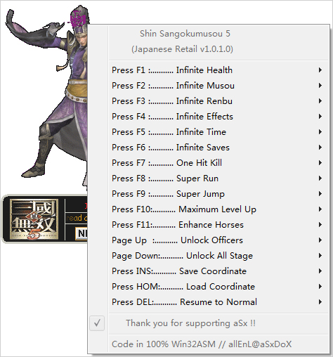 真三国无双5十六项修改器就是一款真三国无双5的游戏修改器,该真三国无双5修改器主要是能帮助大家轻松玩游戏,真三国无双5修改器拥有十六项修改功能,所以大家需要的话就下载吧!