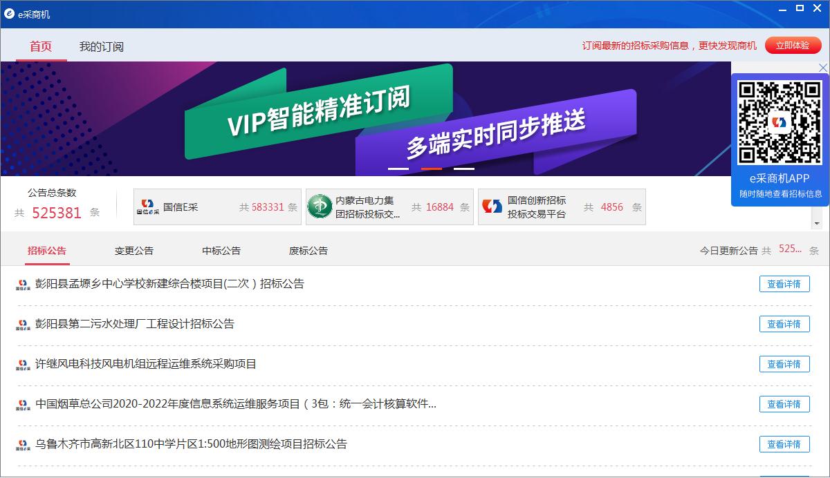e采商机:作为汇聚业内最权威、最专业、最海量的招标信息平台,基于个性化推荐技术,e采商机根据关键词设定智能化提供及时、精准的公告公示信息,定制属于企业的专属信息,使用得越多,推荐越精准。